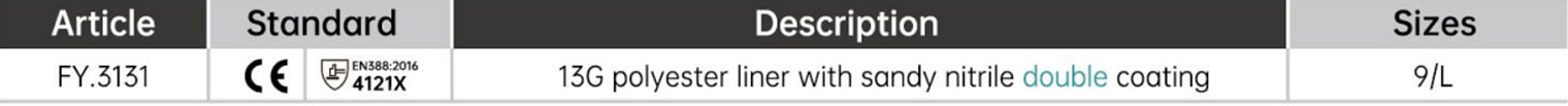 Tugann sciath pailme bailchríoch ghainmheach nítríle dúbailte friotaíocht ard ola agus greim maith i gcoinníollacha tirime, fliucha agus olacha.